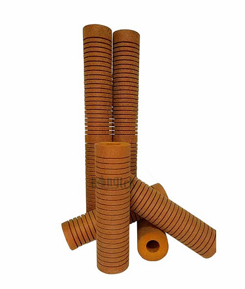 Gerillte harzgebundene Filterpatronen der GRB-Serie bestehen hauptsächlich aus Acrylfasern und Harzen, denen durch Hochtemperatursintern Klebstoffe, Härter und Stabilisatoren zugesetzt werden. Harzgebundene Filter haben eine sich allmählich zusammenziehende Hartstruktur, die es den Patronen ermöglicht, extremen Viskositäten und Temperaturen standzuhalten, ohne sich zu verformen oder zusammenzubrechen. Die Qualität der harzgebundenen Kartuschen von Hongtek entspricht den Micro-Klean-Filterkartuschen von 3M. Sie sind außen lose und innen dicht, mit gleichmäßigen Mikroporen und hoher Porosität, sodass größere Partikel auf der Oberfläche der Filter abgefangen werden können, während kleinere Partikel auf der Innenschicht, die zur Tiefenfiltration gehört, abgefangen werden, wodurch die Abfangkapazität und die Lebensdauer erhöht werden. Durch einen Verarbeitungsprozess werden Rillen auf der Oberfläche der harzgebundenen Filterpatronen angebracht, wodurch die effektive Filterfläche vergrößert und eine ultrahohe Filtereffizienz von 99,9 % erreicht wird. Harzgebundene Kartuschen werden in vielen chemischen Industrien häufig eingesetzt.