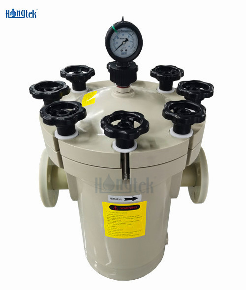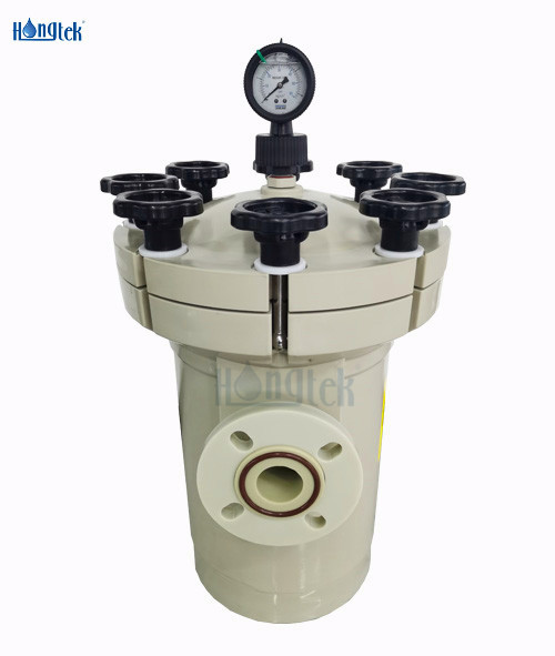 Das PPH-verstärkte industrielle Korbsieb-Filterbeutelgehäuse aus PP-Kunststoff der PBS-Serie besteht aus mit Polypropylen-Homopolymer (PPH) verstärktem Polypropylen-Material, einem einteiligen Spritzgussverfahren, ohne Nähte, ohne Sackgassen, leicht zu reinigen, gute Abdichtung mit streng auslaufsicherem Design. PPH-Industriekorbsiebe aus Kunststoff sind in verschiedenen Flanschgrößen DN32, DN40, DN50, DN65, DN80 und DN100 erhältlich, um den unterschiedlichen Anforderungen der Kunden an die Durchflusskapazität gerecht zu werden. Der innenliegende perforierte Korb mit Filterbeutel fängt das unerwünschte Material ein und ermöglicht gleichzeitig den freien Fluss des Prozessmediums. Darüber hinaus ist der Filterbeutelwechsel oder die Reinigung des Kunststoff-Siebkorbs sehr schnell und einfach. Mit den Vorteilen hoher Temperatur- und Hochdruckbeständigkeit sowie Säure- und Alkalibeständigkeit. Hongtek PPH-Industriekorbsiebe aus Kunststoff eignen sich ideal zum Schutz von Pumpen, Ventilen, Filtern, Düsen oder anderen Flüssigkeitskontrollgeräten in korrosiven oder nicht korrosiven Flüssigkeitssystemen.