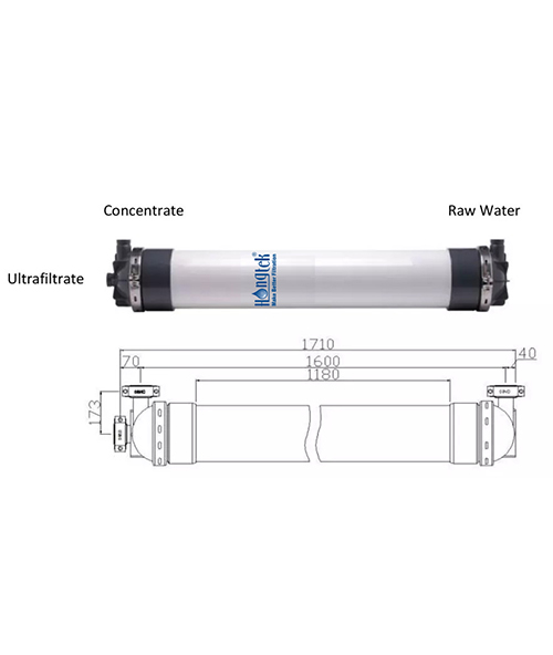 Geräteparameter: UFP250 10" PVC-Hohlfaser-UF-Membranmodul, 32 Stück/Gruppe, 2 Gruppen, insgesamt 64 Stück, Design-Betriebsfluss 50 l/m².h