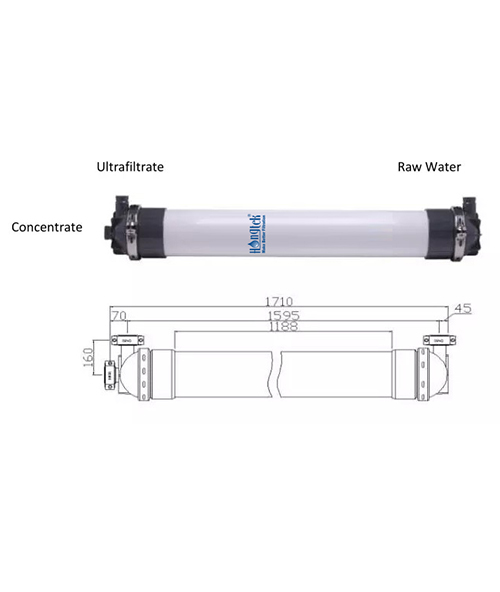 ● Der Strömungsmodus der PVDF-Ultrafiltrationsmembran von außen nach innen gewährleistet die Stabilität und gute Qualität des produzierten Wassers